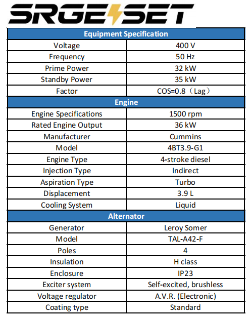 The 32kW silent diesel generator is a small to medium-power industrial-grade emergency/backup power supply. Its core applications include providing power to critical loads in small to medium-sized facilities and portable power for mobile work sites. The silent design (typically 70dB noise level) makes it suitable for environments where noise is a concern. It is a highly versatile power range commonly used in industrial, commercial, and outdoor applications.