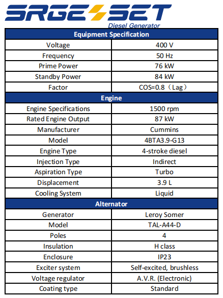 The 76kW silent diesel generator is suitable for hospitals, hotels, shopping malls, factories, construction sites, farms, communication base stations and other places. It can be used as a main or emergency backup power source and can stably power air compressors, welding machines, water pumps, production lines and various medical, commercial and domestic equipment. It is quiet, environmentally friendly and highly reliable, making it an ideal choice for powering small and medium-sized loads.